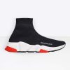 Specification: Balenciaga Men Speed Trainers in Black Knit and White Balenciaga Logo-Red