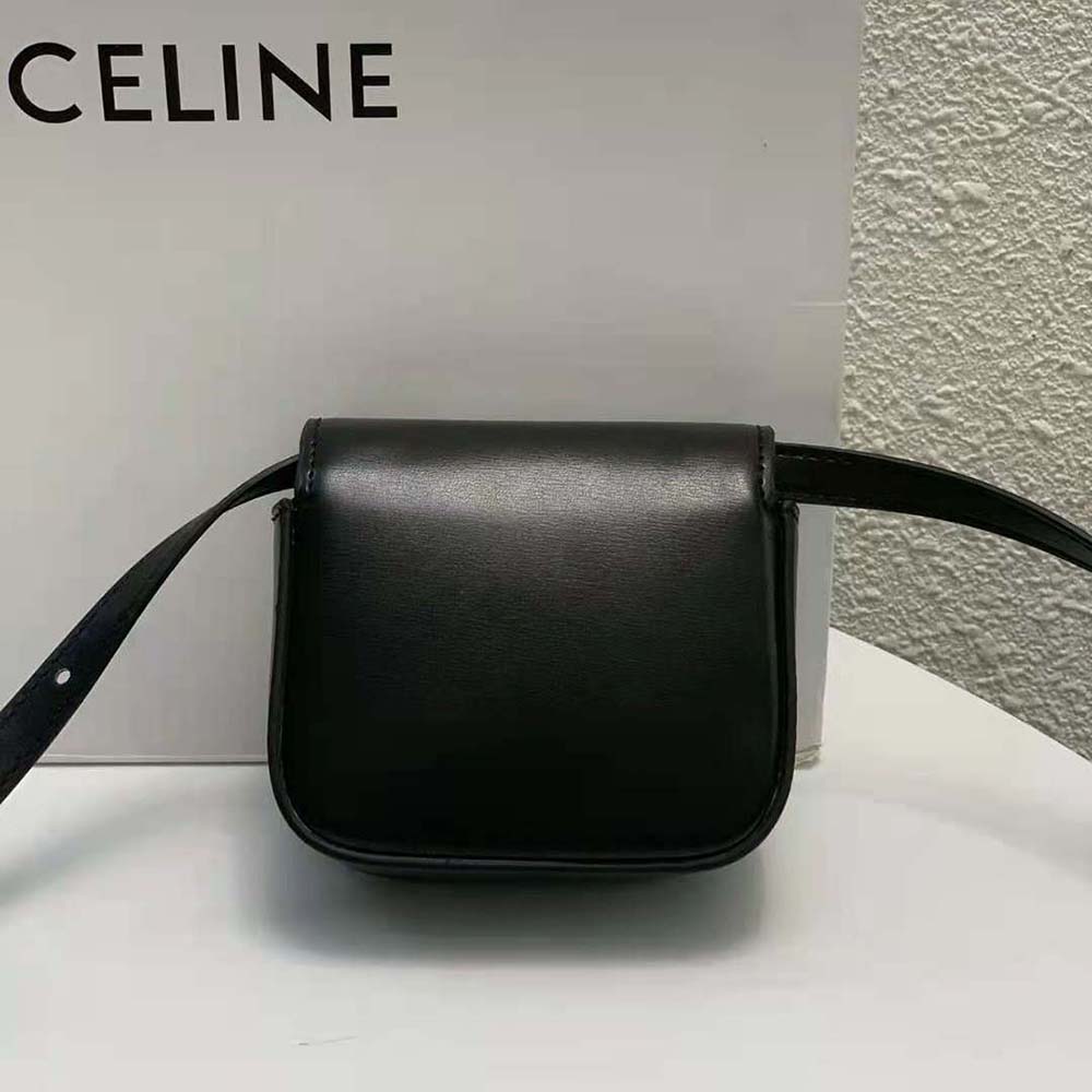 Celine Women Mini Triomphe in Shiny Calfskin-Black