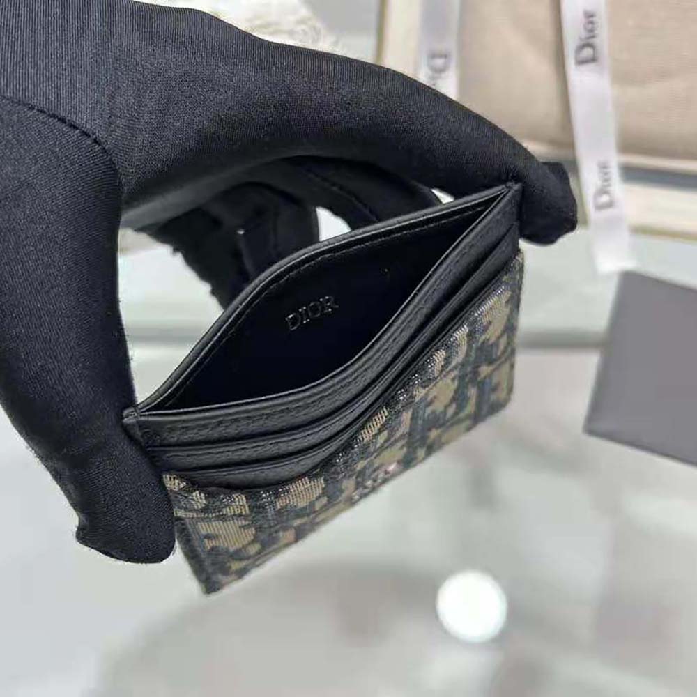 Dior Men Saddle Card Holder Black Grained Calfskin and Beige and Black Dior Oblique Jacquard