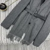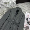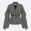 Dior Women Belted Jacket with Removable Scarf Gray Virgin Wool Tweed