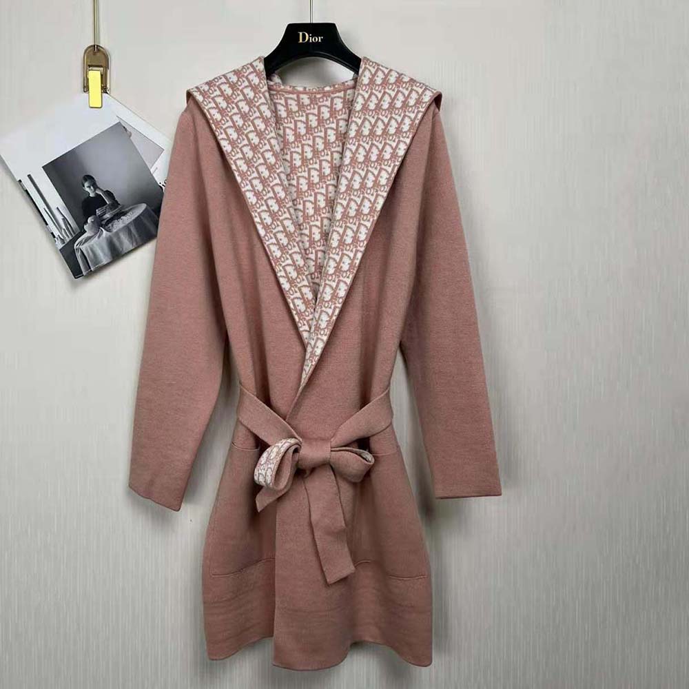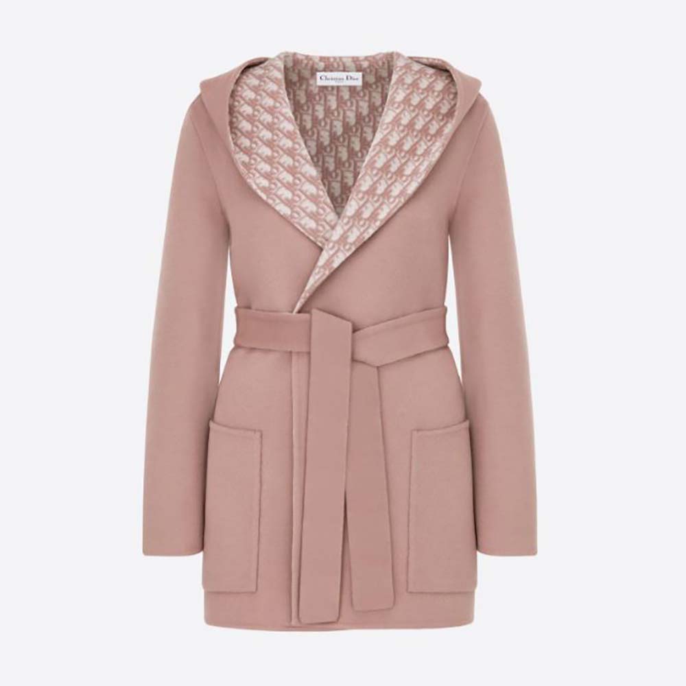 Specification: Dior Women Cropped Coat with Hood and Belt Rose Des Vents Double-Sided Wool
