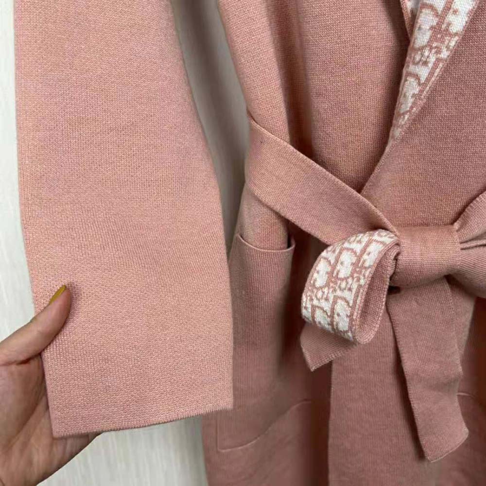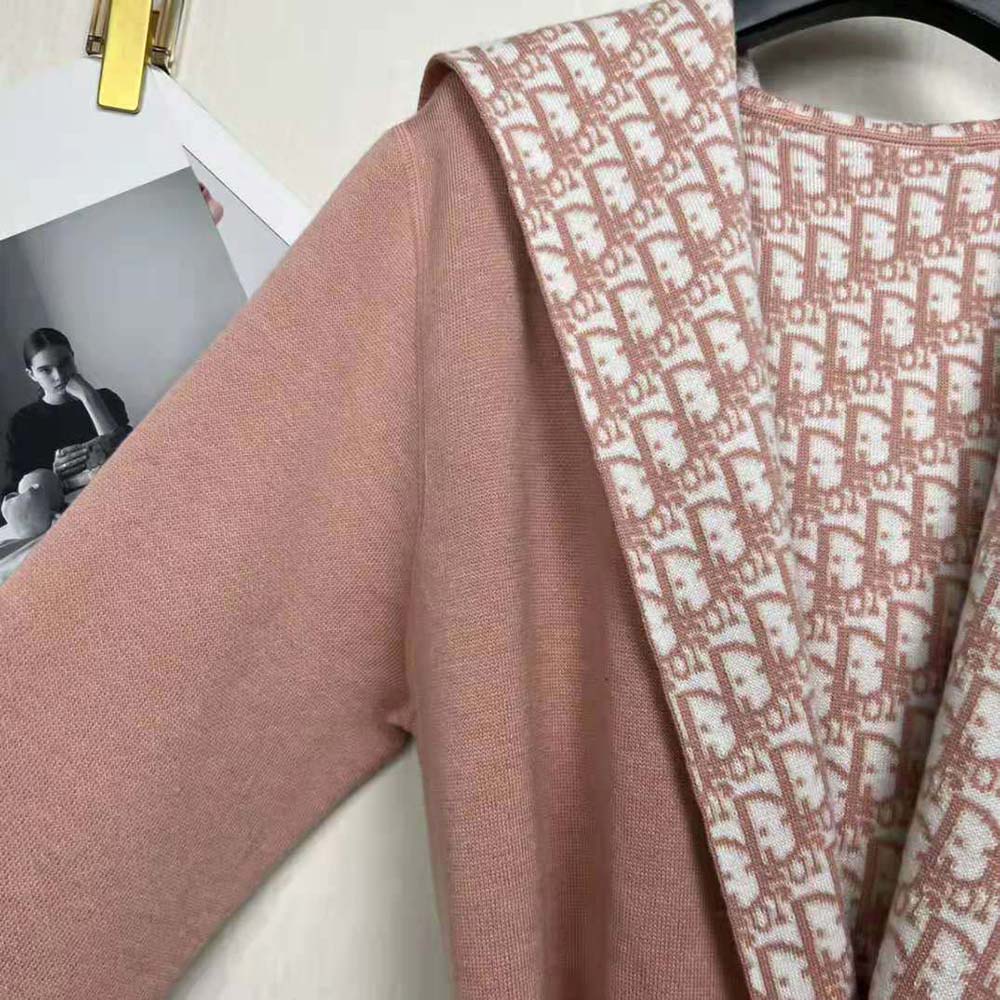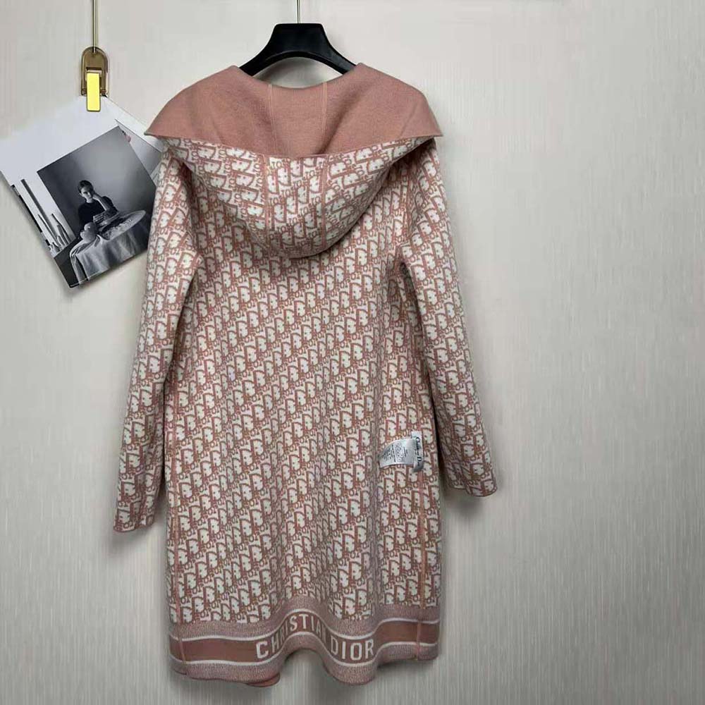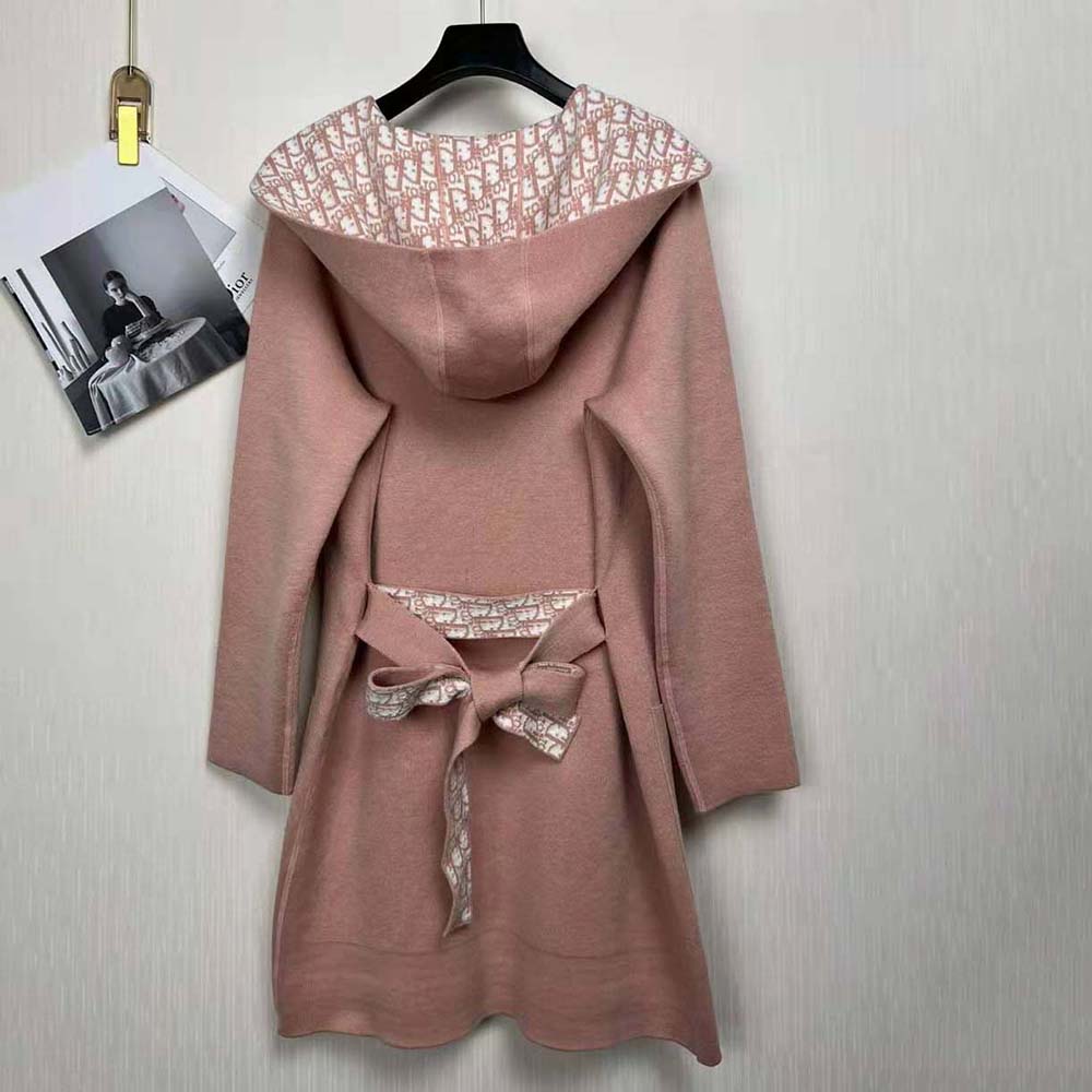 Dior Women Cropped Coat with Hood and Belt Rose Des Vents Double-Sided Wool