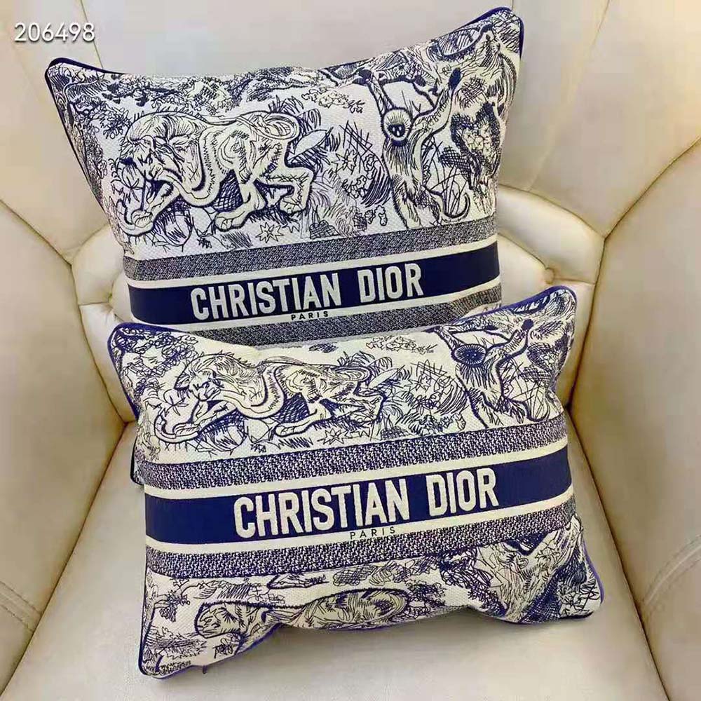 Dior Women Large Rectangular Pillow Blue Toile de Jouy