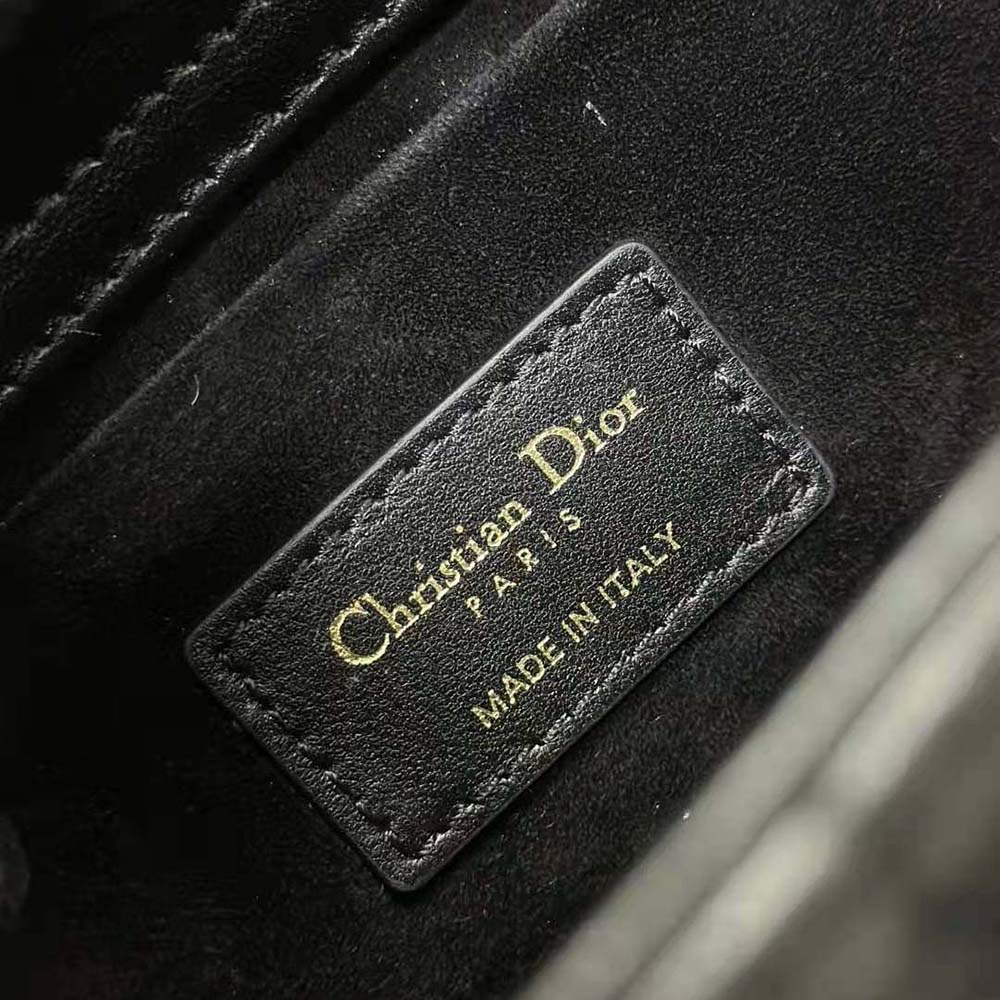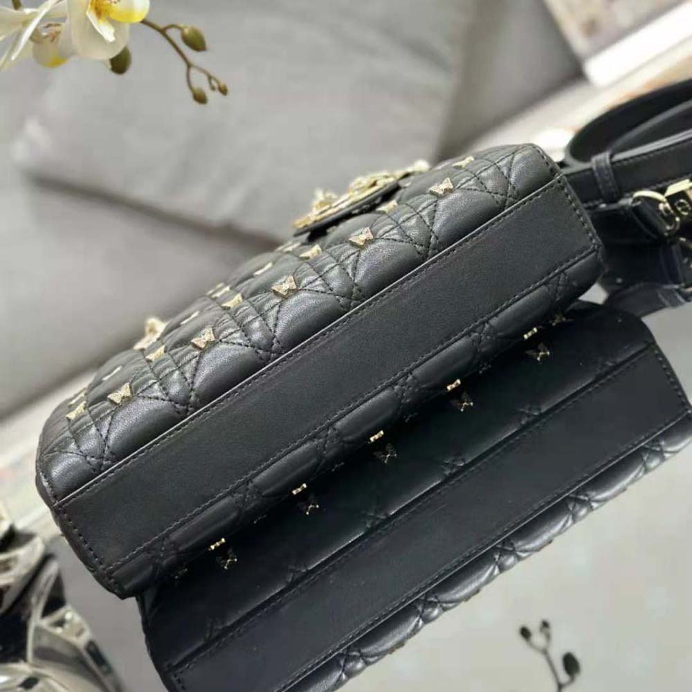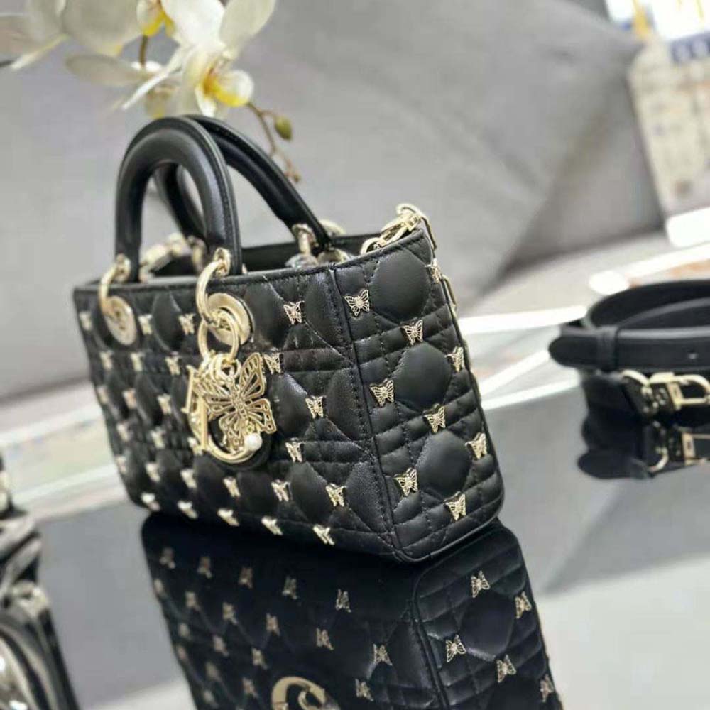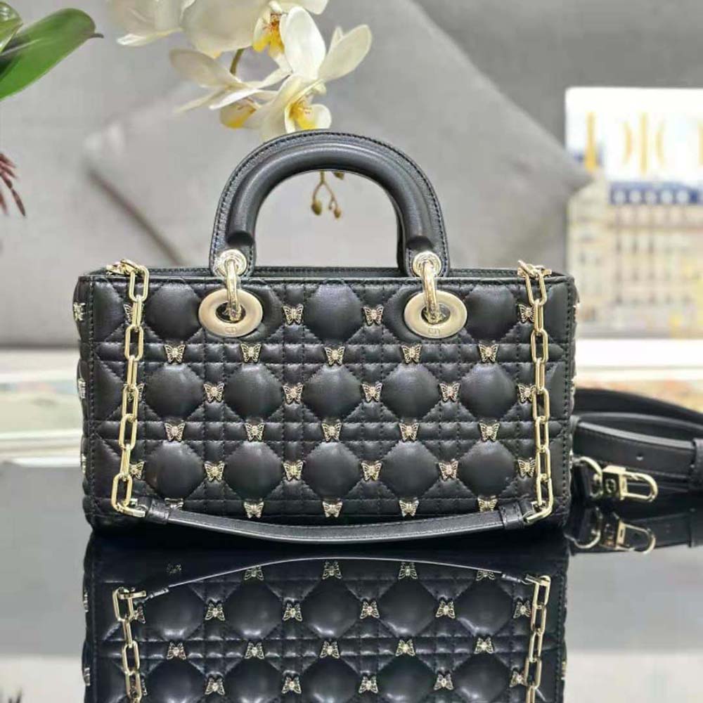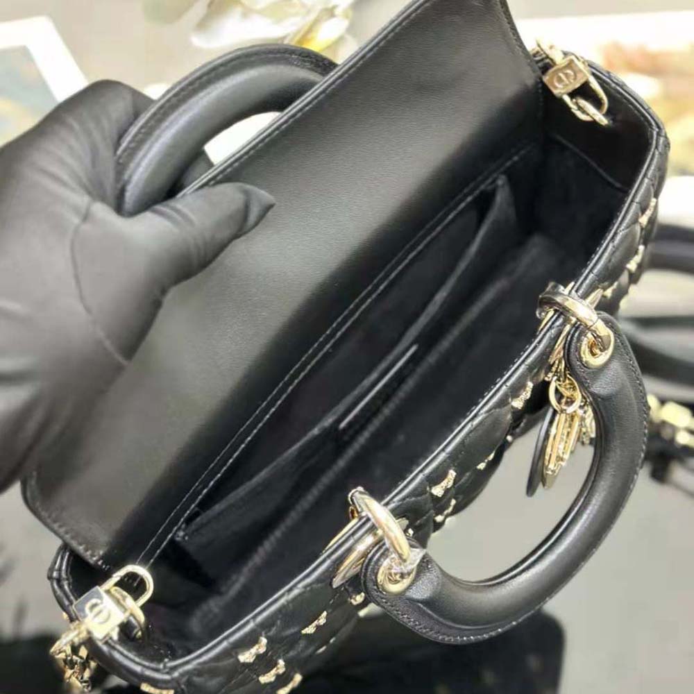Dior Women Medium Lady D-joy Bag Black Cannage Lambskin with Gold-Finish Butterfly Studs