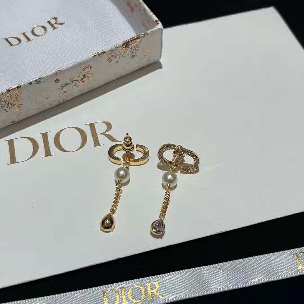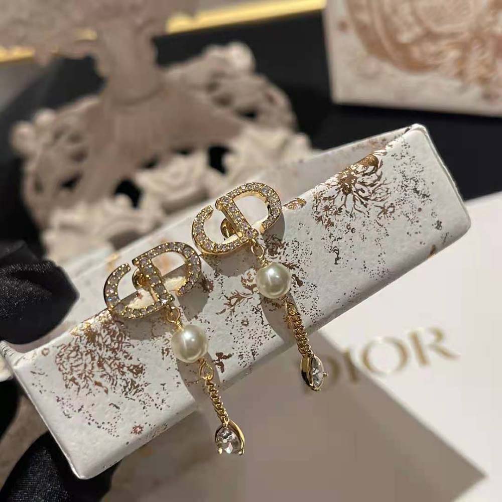 Dior Women Petit CD Earrings Gold-Finish Metal with White Resin Pearls