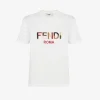 - Fendi Roma lettering embroidery in multicolored thread on the chest.