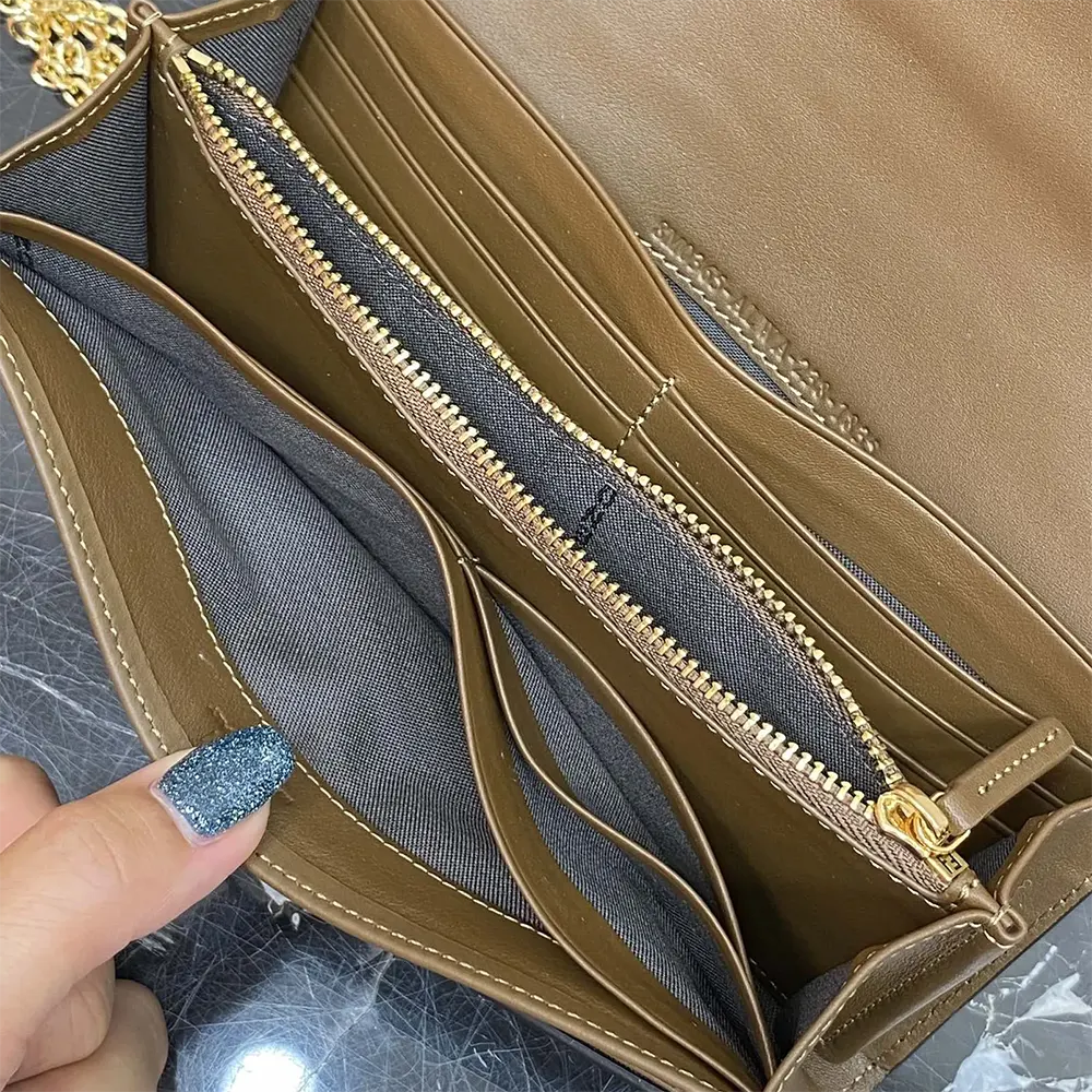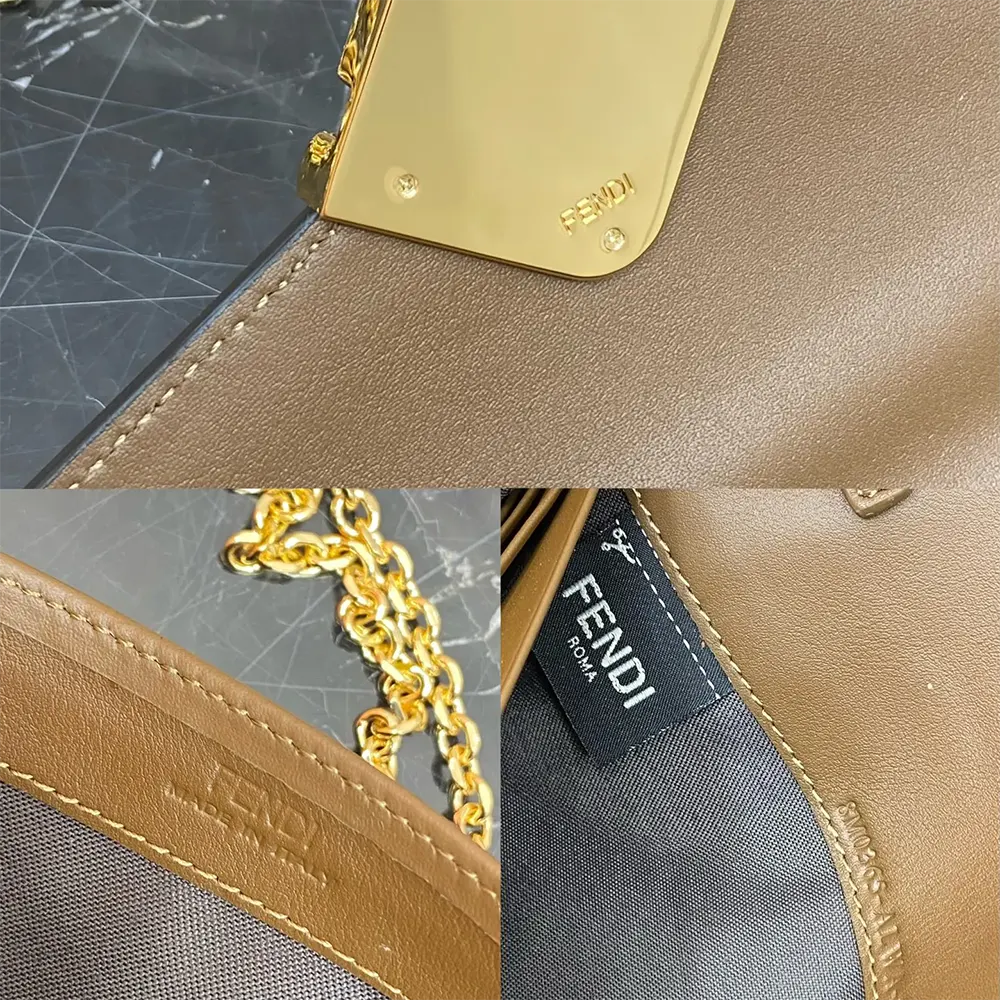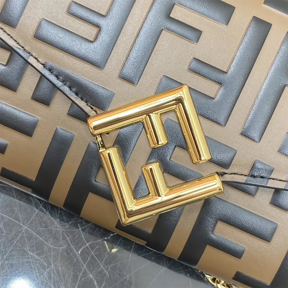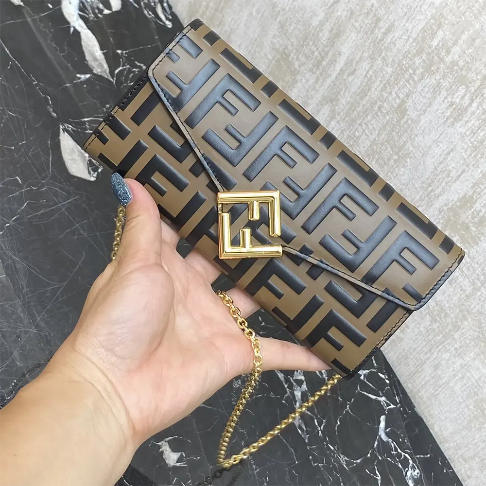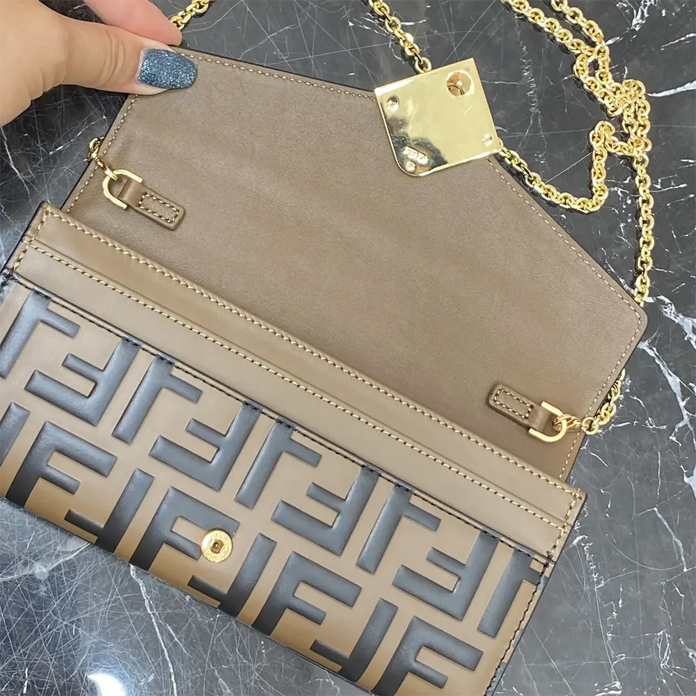 Fendi Women FF Diamonds Continental With Chain Brown and Black FF Leather Wallet