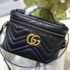 Gucci Unisex GG Marmont Cosmetic Case Black Matelassé Chevron Leather Double G 624615