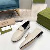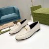 Gucci Unisex Leather Horsebit Loafer White Slim Shape Sole Flat 1 CM Heel 414998