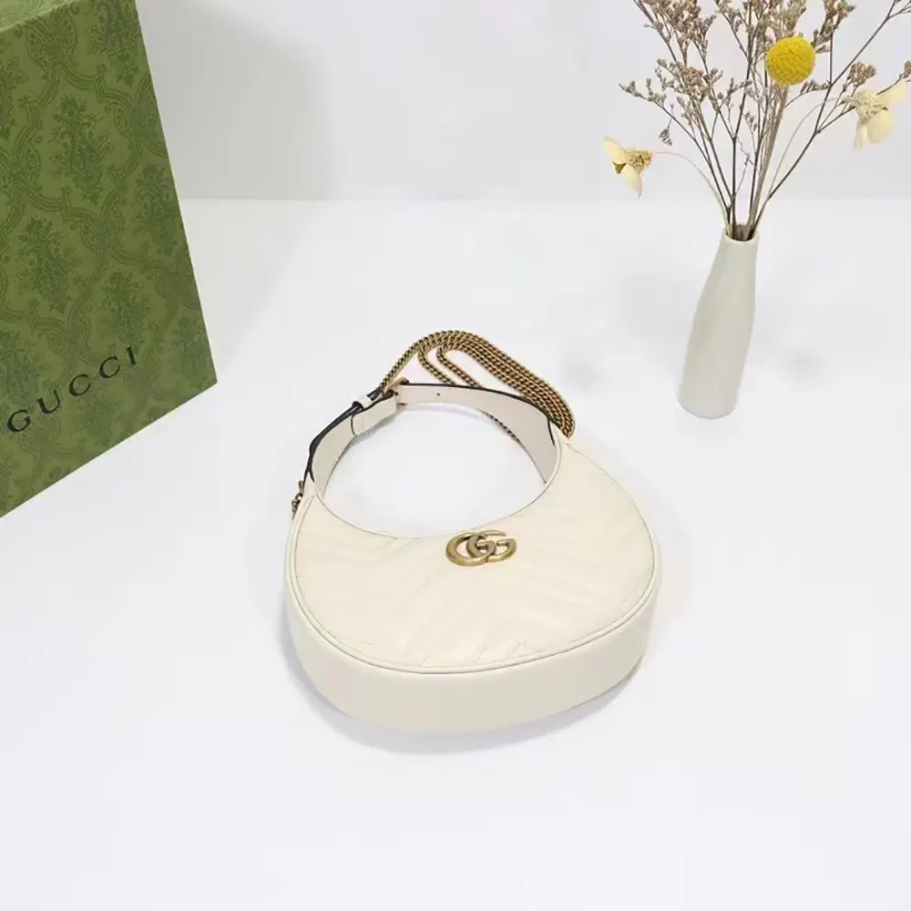 Specification: Gucci Women GG Marmont Half-Moon-Shaped Mini Bag White Matelassé Chevron