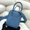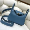 Hermes Women Lindy Mini 19 in Clemence Leather-Blue/Gold