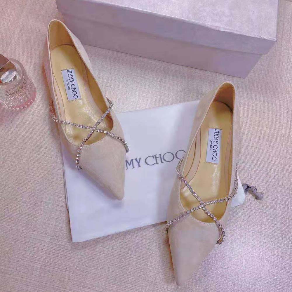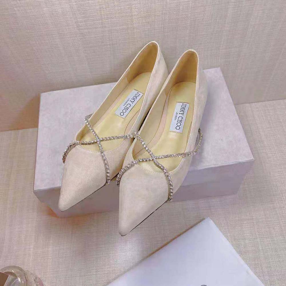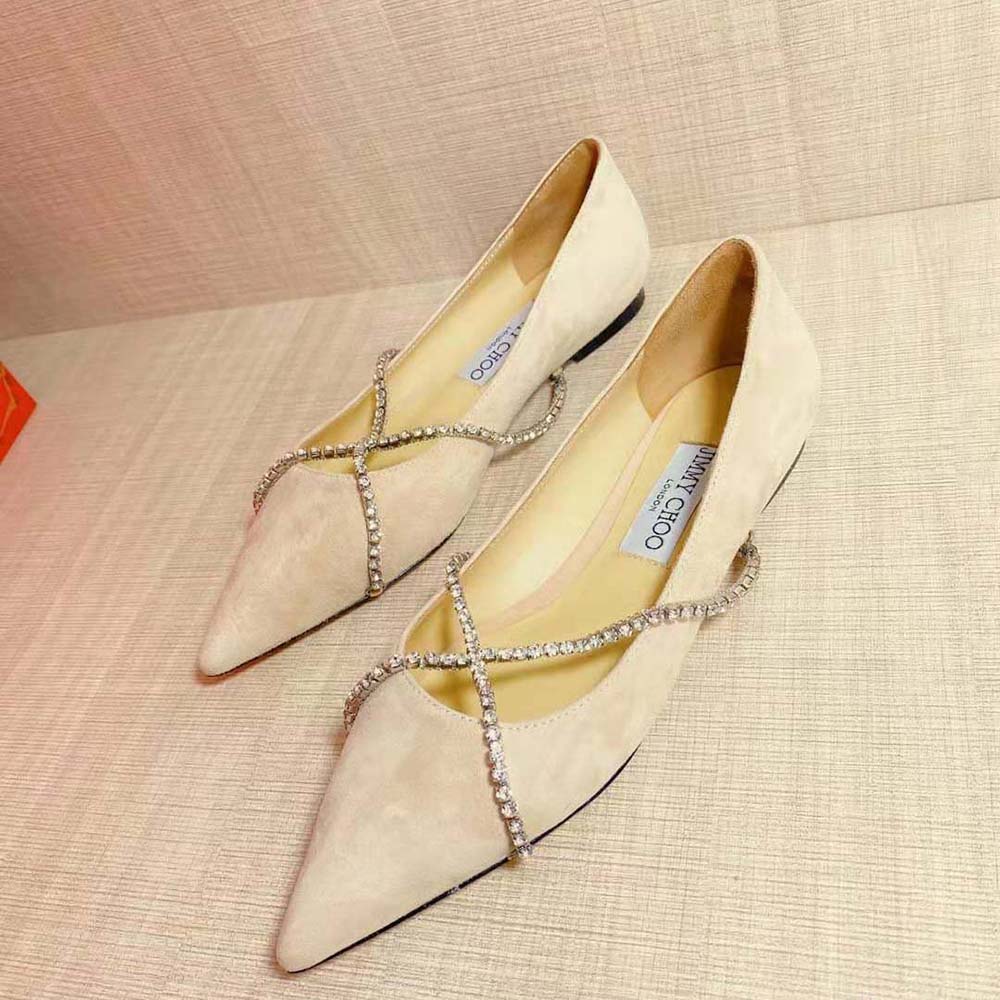 Specification: Jimmy Choo Women Genevi Flat Ballet Pink Pointed-Toe Flats with Crystal Chain