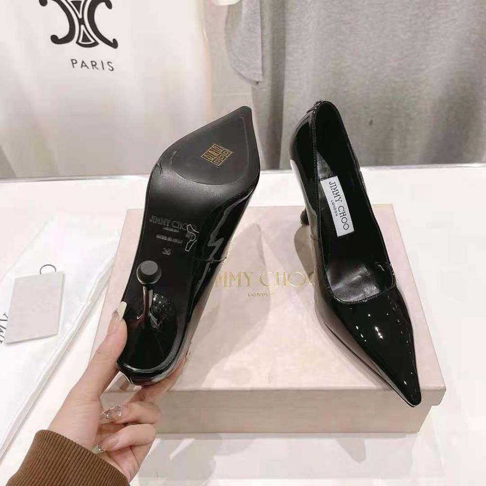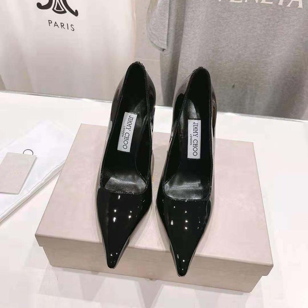 Specification: Jimmy Choo Women Ixia 95 Black Patent Leather Pumps-IXIA95PAT