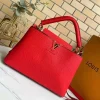 Louis Vuitton LV Women Capucines MM Handbag Scarlet Red Taurillon Leather