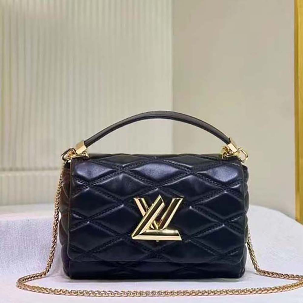 • including the golden LV Twist lock on the flap.