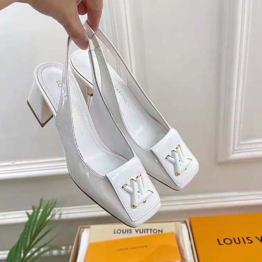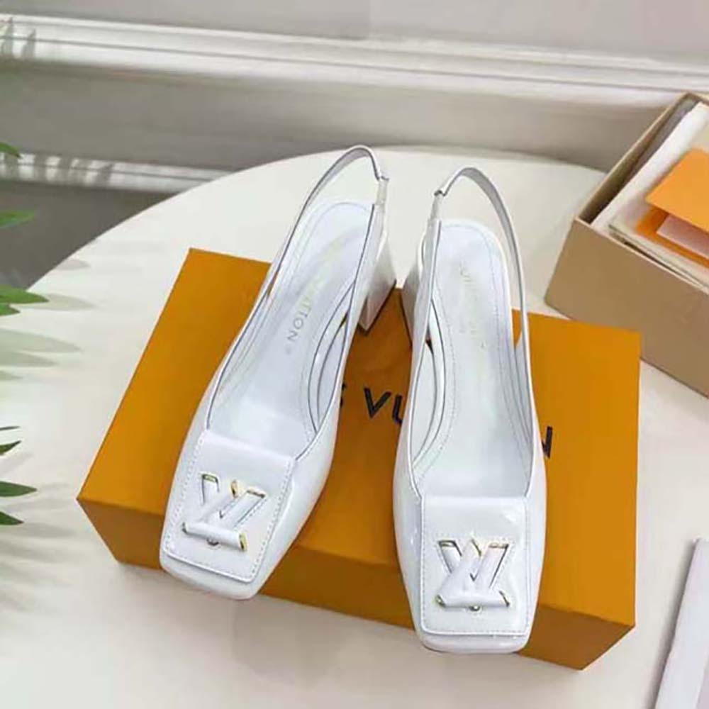 Specification: Louis Vuitton LV Women Shake Slingback Pump White Patent Calf Leather Lambskin 5.5 Cm Heel