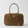 Prada Women Re-Edition 1978 Medium Re-Nylon and Saffiano Leather Two-handle Bag-Brown