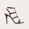 Valentino Women Rockstud Calfskin Ankle Strap Sandal 100 mm-Black WS0A27VOD_0NO