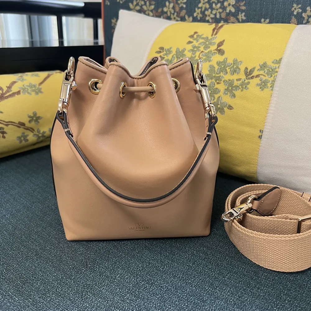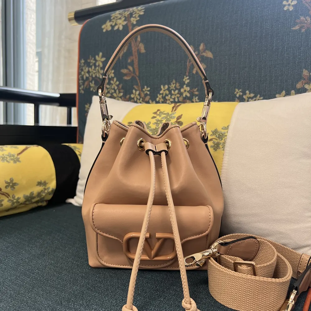 Valentino Women Valentino Garavani Locò Calfskin Bucket Bag-Sandy